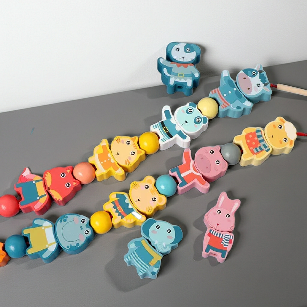 Learning feels like play with this Montessori Wooden Lacing Toy Beads Set, thoughtfully designed to support your child’s early development through hands-on discovery. Each smooth wooden bead features cheerful cartoon animals, fruits, letters, and numbers that naturally invite curiosity and focus.
